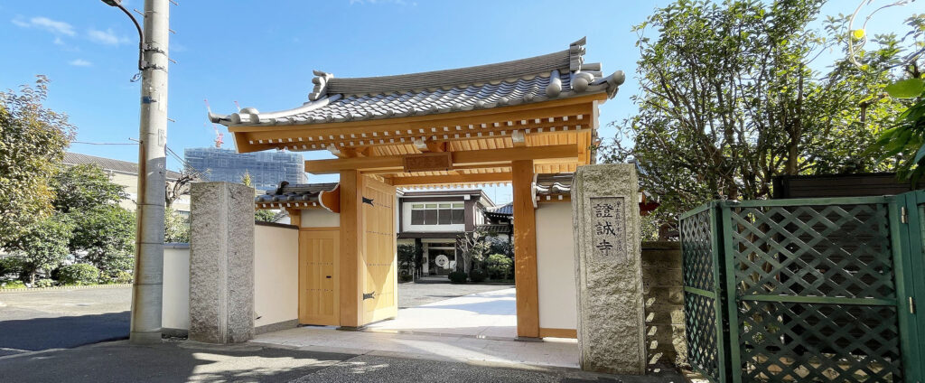 社長自らが刻む、匠の技による品川区證誠寺の山門。